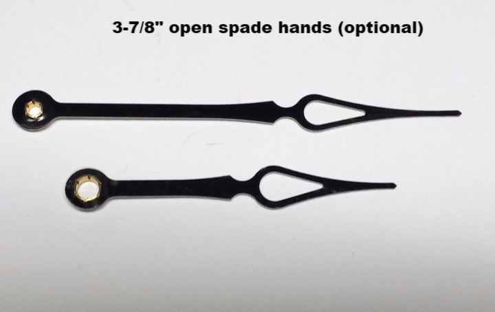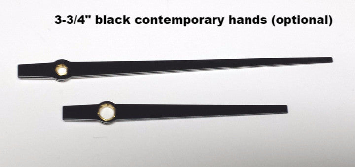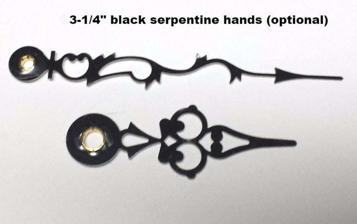 This movement uses press on hands, our regular quartz hour and minute hands will not fit this movement because the minute hand for this one will have a round hole and will simply press on. The hands shown on this listing are the only ones we sell that fit this movement. You can add them to the movement for a minimal charge.